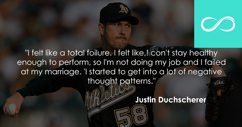 Justin Duchscherer : I felt like a total failure. I felt like, i cant stay healthy enough to perform, so im not doing my job and I failed at my marriage. I started to get into a lot of negative thought patterns.